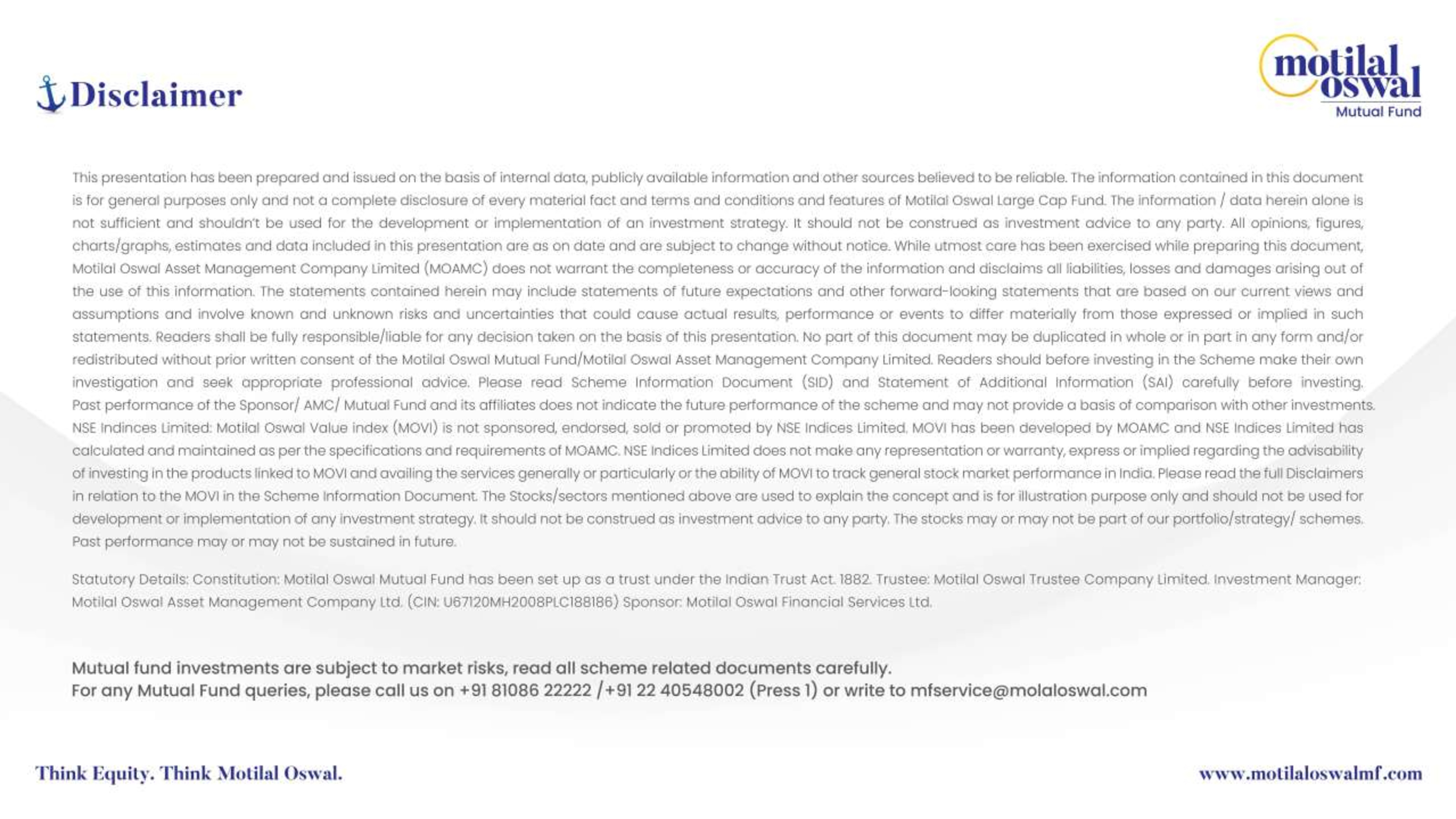 Motilal Oswal Large Cap Fund - Presentation