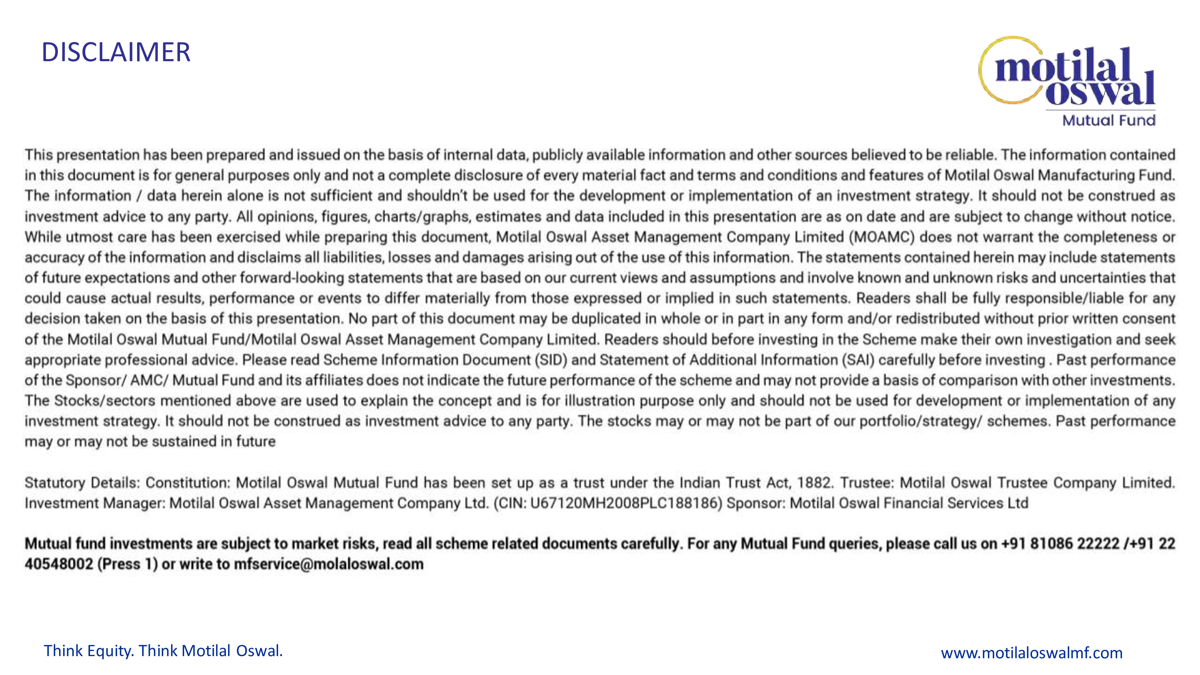 Motilal Oswal Manufacturing Fund - Presentation